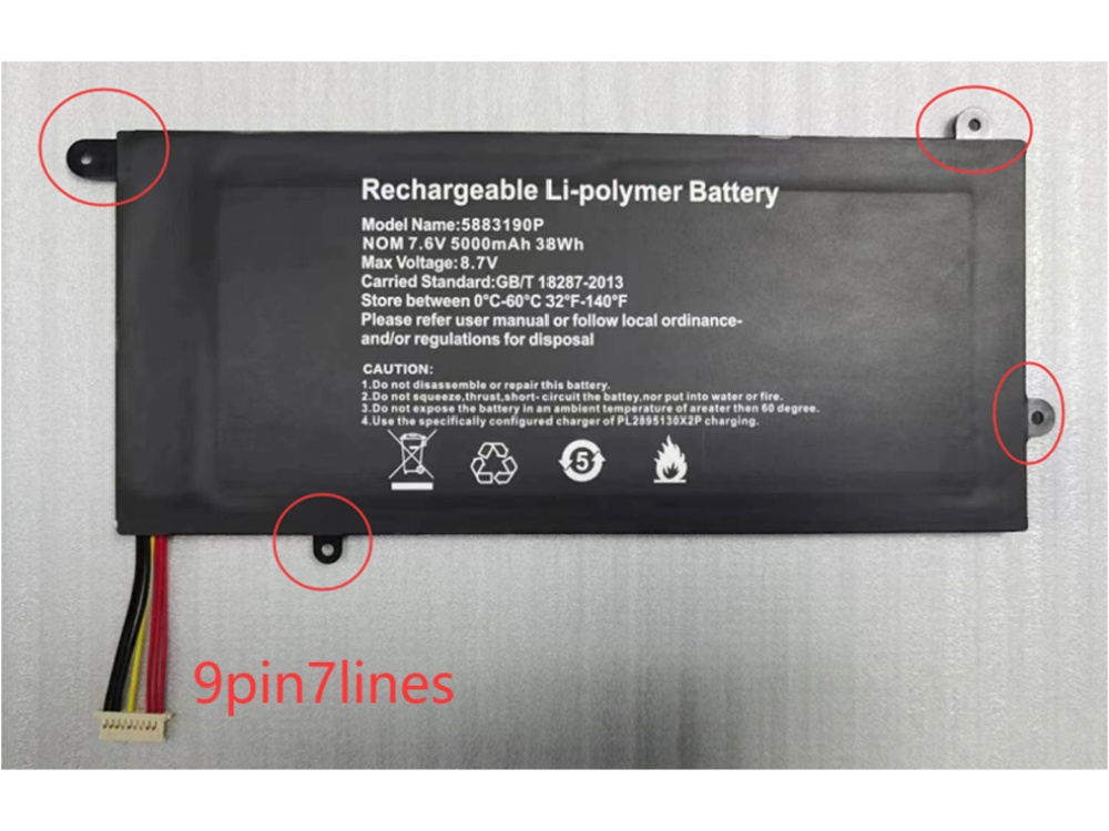 4100mAh/62.32Wh CASPER AEC4563113-2S1P 5000mAh/38Wh 7.6V