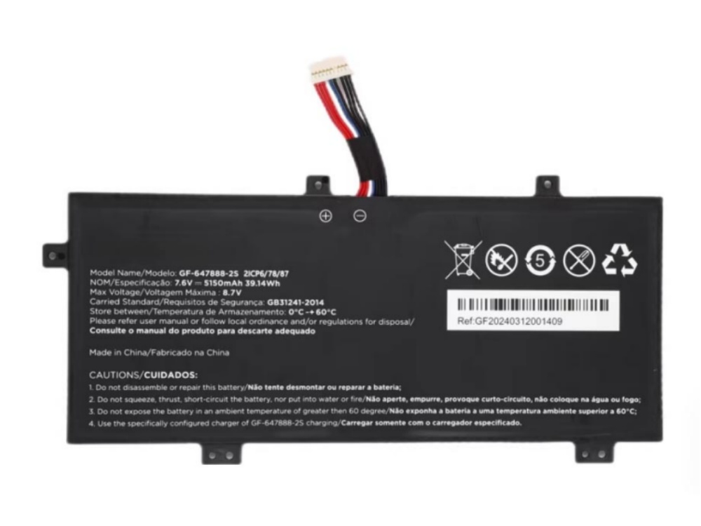 6000mAh/45.6Wh POSITIVO GF-647888-2S 5150mAh/39.14Wh 7.6V